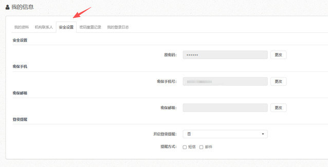方法1:门户点击“个人设置-安全设置”进入信息修改页面如下图,修改对应手机号,密码,邮箱即可修改